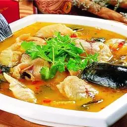 酸汤鱼,是苗侗族的一道传统菜肴,据考证此菜肴最早源于黎平县雷洞镇牙双一带。制作原料主要有鱼肉、酸汤、山仓子等香料。成菜后,略带酸味、幽香沁人、鲜嫩爽口开胃,是贵州“黔系”菜肴的代表作之一。这道菜通常先自制酸汤,之后将活鱼去掉内脏,入酸汤煮制。