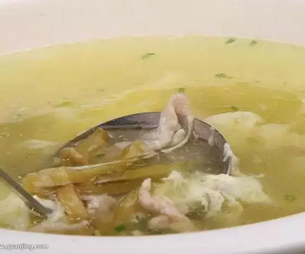 酸汤鱼 传统的白酸是用清米汤在酸汤桶中慢慢发酵而成,快速简单的白酸是将面粉用作发面的300克老面搓细后放入盆中,加入5千克清水,充分溶解后倒入锅中置火上,边加热边搅拌,再将100克糯米粉(也有用玉米面、黄豆面的)用清水调匀后倒入锅中。待锅中汤汁烧沸后,起锅倒入坛子内封好口,放在温度稍高的地方静置一两天。色泽乳白、酸味纯正。酸汤与泡菜水和卤水一样,保存得当,愈存愈香。