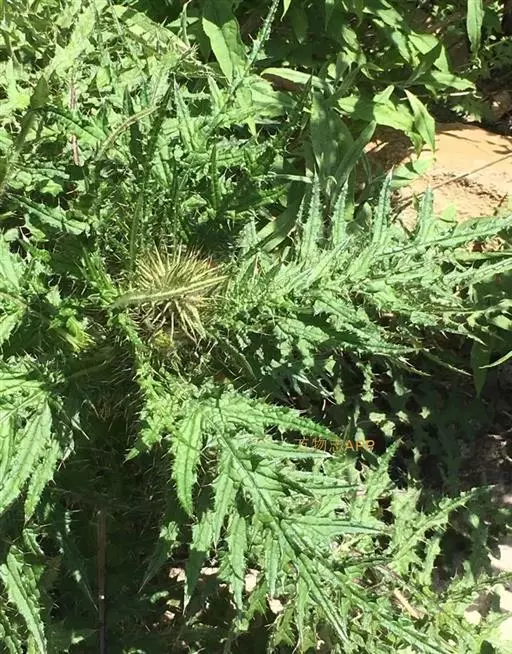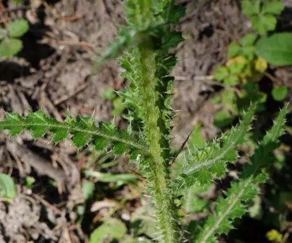 二年生或多年生草本,高40-150厘米。茎直立,有条棱,不分枝或最上部有极短或较长分枝,被稀疏的多细胞长节毛,上部或接头状花序下部有稀疏或较稠密的蛛丝状毛或蛛丝状棉毛。下部茎叶全形椭圆形、长椭圆形或倒披针形,长5-18厘米,宽1-7厘米,羽状深裂或半裂,侧裂片7-12对,偏斜半椭圆形、半长椭圆形、三角形或卵状三角形,边缘有大小不等的三角形或偏斜三角形刺齿,齿顶及齿缘或浅褐色或淡黄色的针刺,齿顶针刺较长,长达3.5厘米,齿缘针刺较短,或下部茎叶不为羽状分裂,边缘大锯齿或重锯齿;中部茎叶与下部茎叶同形并等样分裂,但渐小,最上部茎叶线状倒披针形或宽线形;全部茎叶两面明显异色,上面绿色,有稀疏的多细胞长节毛,但沿中脉的毛较多,下面灰绿色或浅灰白色,被蛛丝状薄绵毛,沿脉有较多的多细胞长节毛,基部渐狭,两侧沿茎下延成茎翼。茎翼边缘齿裂,齿顶及齿缘有黄白色或浅褐色的针刺,针刺长2-3毫米,极少长达5毫米的,上部或接头状花序下部的茎翼常为针刺状。