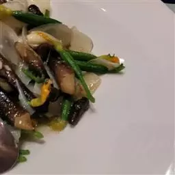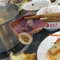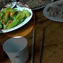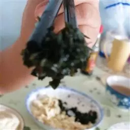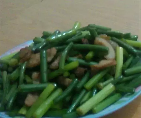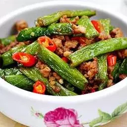 2、豆角200克、猪肉150克、姜丝、食盐、五香粉、鸡精、麻油各少许。
