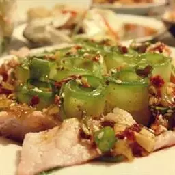 油100g,盐2g,猪肉75g,蒜2瓣,料酒6g,生抽5g,鸡精1g,白胡椒粉适量