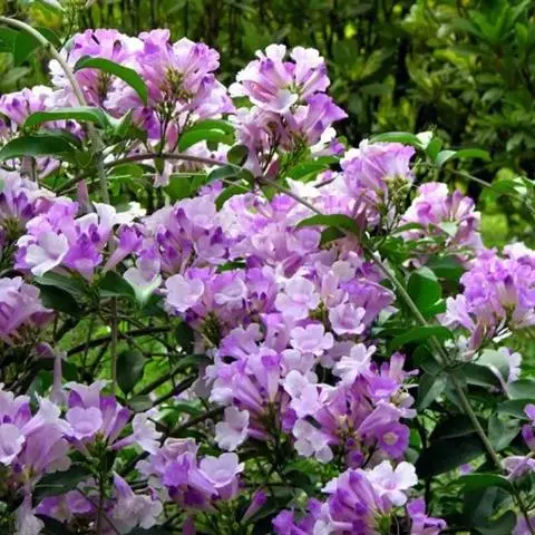 粉花凌霄 K.Schum.)是紫葳科魔盒凌霄属的落叶藤本植物。奇数羽状复叶对生,小叶全缘,…
