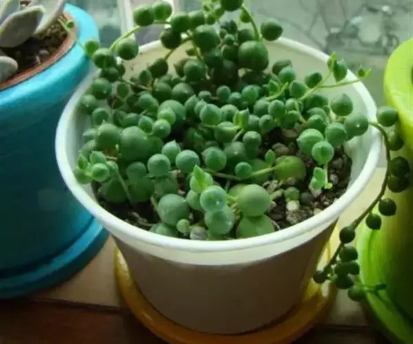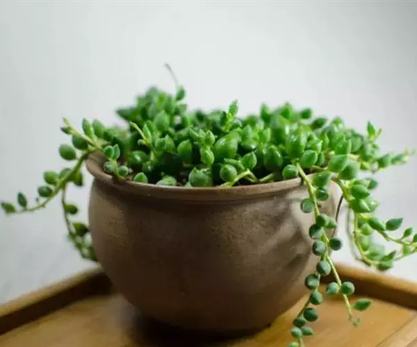 珍珠吊兰叶形夜色较美,呈匍匐生长状,可悬挂呈垂吊状,具有很高的观赏价值,也是人气较旺盛的多肉植物品种之一。