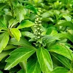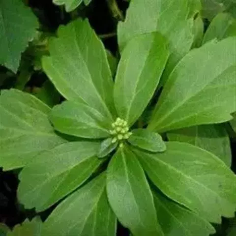 板凳果常绿亚灌木,铺地生长。株高20cm,冠径25cm。每个茎顶端生3~6片叶,叶卵形,边缘有锯齿,…