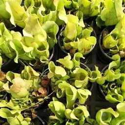 在栽培用盆方面,由于瓶子草需要有少许水分泡浸会生长更好,应选择一个半腰水的花盆栽植较好。这类盆具在市场上较少,自己动手制造,方法是在普通的素烧红砖盆或塑料盆上套入一个水仙盆即可,关键是水仙套盆应处于栽植盆的上半部,亦即“腰部”,以便浇水后漏出的水浸于栽植盆的齐腰处。此外,瓶子草盆栽一般以吊盆或塑料盆栽植,购回后为其选一个腰水水碟,对口后栽培会十分有利。