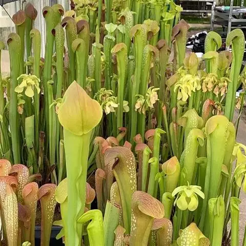 要成功栽植瓶子草,了解其所需温度十分重要,一般,夏季所需温度应在21~35℃,冬季在1.7~7.1℃较为适宜。值得注意的是,所有瓶子草属植物均具有耐轻霜的能力。因此,人工栽培,冬季无需移入温室,极度严寒时除外。紫色瓶子草(Spurpurea)有一个较长的休眠期,在原生地其休眠期可长达5个月。因此人工栽培时,冬季应让其休眠,此时可减少浇水,并将其放置于低温环境下,这样经休眠后至春暖期,其花序和叶片就会同时长出,1个月左右便可长成一株花叶俱美的盆栽。