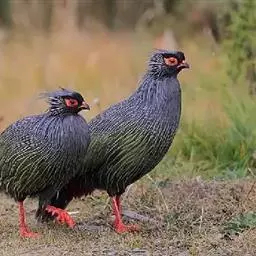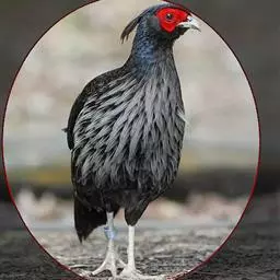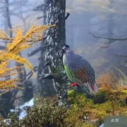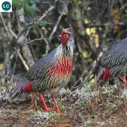 血雉雉科血雉属鸟类,别名血鸡、松花鸡,血雉的雄鸟大覆羽、尾下覆羽、尾上覆羽、脚、头侧、腊膜为红色,…