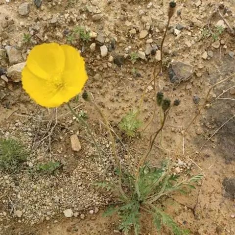野罂粟 Banfi, Bartolucci, J.-M.Tison & Galasso)是罂粟科、高山罂粟属多年生草本植物。株高20-50厘米,具乳汁,全体被粗毛。叶生基生,具长柄;叶片轮廓卵形或长卵形、狭卵形或披针形,先端钝圆,两面疏生微硬毛。花单独顶生。萼片2,广卵形,被棕灰色硬毛,花开后脱落。花瓣4,桔黄色,倒卵形至宽倒卵形,具微波状缺刻。雄蕊多数,花丝丝状;子房具棱,柱头5-9裂。蒴果,狭倒卵形,密被视而长的硬毛,顶孔开裂。种子细小,多数。花期6-7月,果期8月。生于海拔580-3500米的林下、林缘、山坡草地。两半球的北极区及中亚和北美等地有分布。原产地俄罗斯;引入阿拉斯加、格陵兰岛和中国多地。
