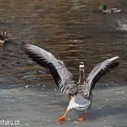 斑头雁是雁形目鸭科雁属鸟类,又称白头雁、黑纹头雁。通体大都灰褐色,头和颈侧白色,…