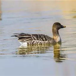 豆雁,雁形目鸭科。成鸟头、颈、背灰褐色,带淡黄色羽缘;尾上覆羽白色,尾羽黑褐色带白端,…