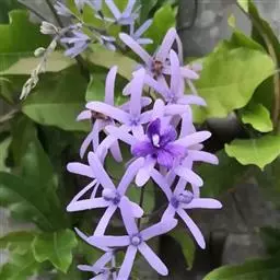 蓝花藤是马鞭草科、蓝花藤属木质藤本,长达5米,叶对生,革质,触之粗糙,椭圆状长圆形或卵状椭圆形,…