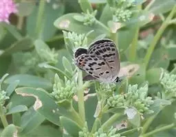 曲纹紫灰蝶是鳞翅目灰蝶科昆虫。成虫体长10-12毫米,翅展20-35毫米,翅面紫蓝色,前翅外缘黑色,…