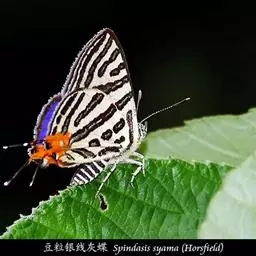 本种比豆粒银线灰蝶稍大,前翅基部纵棒斑端部与前缘接触,并向后弯折成为一分支,…