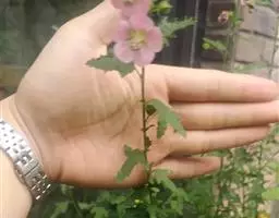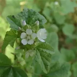 野葵,叶互生,有长柄,柄长生毛茸,叶大,圆状肾形,5-7掌状裂,裂片三角形,边缘有细锯齿。叶腋簇生小花,花瓣5,端凹入,花白色有紫晕或浅红色,花柱丝状白色。果扁圆形,光洁,果熟时各心皮彼此分离。花期7-9月。可作绿化材料。幼苗滑嫩可食。全草或种子、茎及根可入药。茎皮纤维可代替麻用。种子药用有利水滑窍,润便利尿,下乳汁,去死胎;又可拔毒排脓和疗疮疖等。