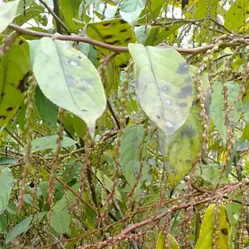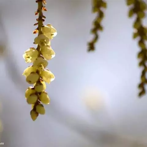 中国旌节花(Stachyurus chinensis Franch. )旌节花科、旌节花属落叶灌木,高2-4米。树皮光滑紫褐色或深褐色;小枝粗状,圆柱形,具淡色椭圆形皮孔。叶于花后发出,互生,纸质至膜质,卵形,长圆状卵形至长圆状椭圆形,先端渐尖至短尾状渐尖,基部钝圆至近心形,边缘为圆齿状锯齿,侧脉在两面均凸起,上面亮绿色,无毛,下面灰绿色;叶柄通常暗紫色。穗状花序腋生,先叶开放,无梗;花黄色,近无梗或有短梗;苞片1枚,三角状卵形,顶端急尖,长约3毫米;小苞片2枚,卵形;萼片4枚,黄绿色,卵形;花瓣4枚,卵形。果实圆球形,无毛,近无梗。花粉粒球形或近球形,赤道面观为近圆形或圆形,极面观为三裂圆形或近圆形,具三孔沟。花期3-4月,果期5-7月。