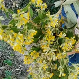 穗状花序腋生,先叶开放,长5-10厘米,无梗;花黄色,长约7毫米,近无梗或有短梗;苞片1枚,三角状卵形,顶端急尖,长约3毫米;小苞片2枚,卵形,长约2厘米;萼片4枚,黄绿色,卵形,长约3:5毫米,顶端钝;花瓣4枚,卵形,长约6.5毫米,顶端圆形;雄蕊8枚,与花瓣等长,花药长圆形,纵裂,2室;子房瓶状,连花柱长约6毫米,被微柔毛,柱头头状,不裂。果实圆球形,直径6-7厘米,无毛,近无梗,基部具花被的残留物。花粉粒球形或近球形,赤道面观为近圆形或圆形,极面观为三裂圆形或近圆形,具三孔沟。染色体数目2n=24。花期3-4月,果期5-7月。