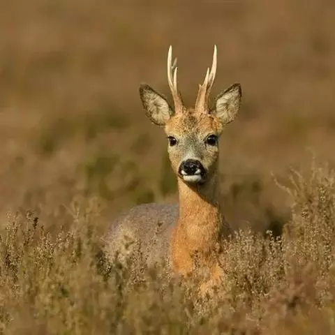 黑麂 黑麂是麂类中体型较大的种类。体长100~110厘米,耳长80~98毫米,尾长20~40毫米,后足长230~285毫米,颅全长132~147毫米。肩高60厘米左右,体重21~26千克。自吻端直至眶前区的面长为64~70毫米,一般短于颅全长的1/2。头骨短小,吻部较窄,鼻骨长直(长44~46毫米),且其最宽处在前部。泪骨形态与林麝相反,呈长方形,即多数为长大于宽(长17~22毫米,宽16.5~18.5毫米),仅极少数是长宽相近。