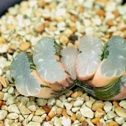 三角琉璃莲也称三角玉露(学名:Haworthia cymbiformis var. triebnet poelln),是阿福花科瓦苇属的多肉植物,原产南非。植株矮小,株高一般5~6厘米。叶形叶色较美,有一定的观赏价值。
