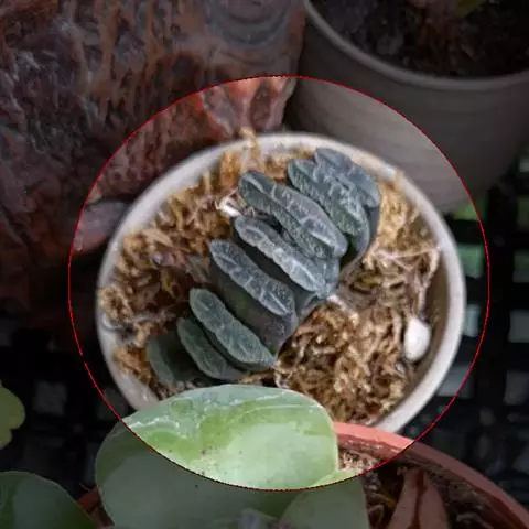 多年生肉质草本植物,植株初 为单生,以后逐渐呈群生状。肉质叶呈紧凑的莲座状排列,叶片肉质,相对玉露来说叶片更尖长,翠绿色,上半段有透明或半透明状窗口。