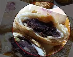 厨师捏紧面饼一端按顺时针方向转动,手里的面饼越转越大,越转越薄,几近透明。接着就是放馅料,稍做切割,装盘。咬下一口,“喀嚓”一声,再一口就吃到了牛肉的嫩香。好一个外脆内韧啊。
