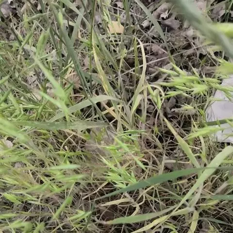 该种似野燕麦Avena fatua Linn.,其主要性状为小穗含1~2小花;小穗轴近于无毛或疏生短毛,不易断落;第一外稃背部无毛,基盘仅具少数短毛或近于无毛,无芒,或仅背部有1较直的芒,第二外稃无毛,通常无芒。