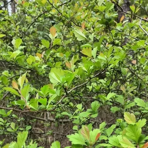 落叶灌木,高达15米,分枝密,通常具细刺,刺长5-8毫米;小枝细弱,圆柱形,有稜,幼时被柔毛,一年生枝紫褐色,无毛,老枝灰褐色,散生长圆形皮孔;冬芽三角卵形,先端圆钝,无毛,紫褐色。叶片宽倒卵形至倒卵状长圆形,长2-6厘米,宽1-4.5厘米,先端急尖,基部楔形,下延连于叶柄,边缘有不规则重锯齿,顶端常有3或稀5-7浅裂片,上面无毛,有光泽,下面具稀疏柔毛,沿叶脉较密,以后脱落,叶脉显著;叶柄两侧有叶翼,长约4-15毫米;托叶大形,草质,镰刀状,边缘有齿。
