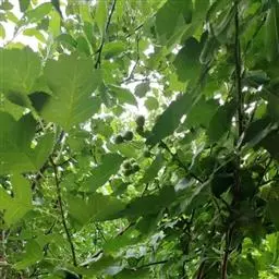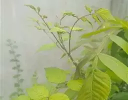 将筛选后的种子埋于半干半湿的沙子里(以手抓成团,放下不散为宜),3-5天,有少数种子出现芽头即可播种。苗圃地块要施足底肥,每亩(1亩=667平方米,下同)施100千克腐熟饼肥和3千克氮磷钾复合肥。种子播入土中3厘米左右,然后在上面加盖塑料地膜。一般一周或8天左右出苗,幼苗长出2-3片真叶时揭去地膜,长到3-4片真叶时,进行分苗培育,密度控制在每亩地1.5万-2万株,分苗满两个月时要根据天气状况及时补充土壤水分,当株高达到20厘米后,每个月都要浇一次水,并进行打顶和摘去基部的分杈细枝。