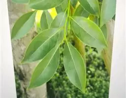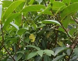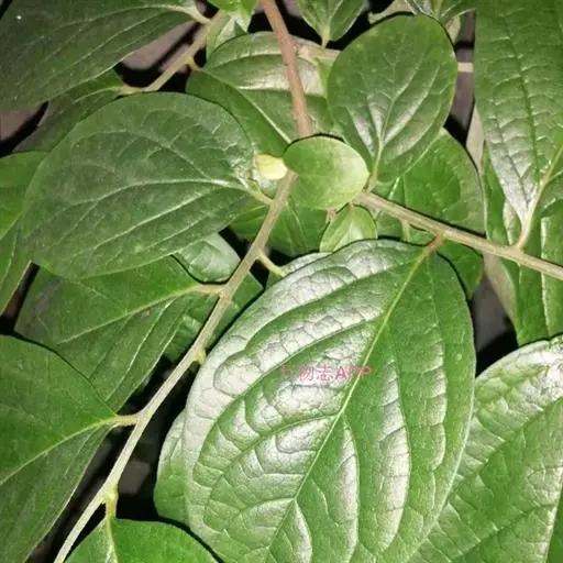 叶纸质,卵状椭圆形至倒卵形或近圆形,通常较大,长5-18厘米,宽2.8-9厘米,先端渐尖或钝,基部楔形,钝,圆形或近截形,很少为心形,新叶疏生柔毛,老叶上面有光泽,深绿色,无毛,下面绿色,有柔毛或无毛,中脉在上面凹下,有微柔毛,在下面凸起,侧脉每边5-7条,上面平坦或稍凹下,下面略凸起,下部的脉较长,上部的较短,向上斜生,稍弯,将近叶缘网结,小脉纤细,在上面平坦或微凹下,连结成小网状;叶柄长8-20毫米,变无毛,上面有浅槽。