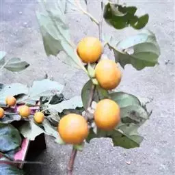 大秋 原产日本,国家资源圃于1997年从日本直接引进。该品种果实特大,平均重230克,最大果重368克,高馒头形,橙红色。果肉黄色均一,无褐斑。肉质酥脆,口感甜爽,汁多味浓,糖度达24%,品质极上。是日本近年育成的少有的大果、优质完全甜柿品种。有极高的商品性。在陕西省10月上中旬成熟。但必须强调,由于该品种属于富有系品种,引入中国后,与软枣亲和力极差,高接时应接在大柿树上,而不要接在软枣上;育苗时也必须接于本砧或以柿品种为中间砧的苗木上。另外,如成熟较早的完全甜柿品种伊豆、新秋;中熟品种前川次郎、兴津20;晚熟品种晚御所、骏河以及中国原产的罗田甜柿、秋焰、甜宝盖等甜柿品种在一定小气候下也可栽培生产。