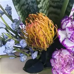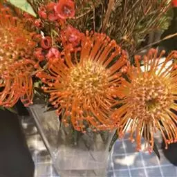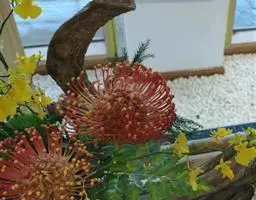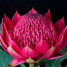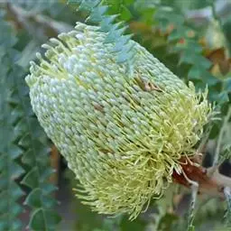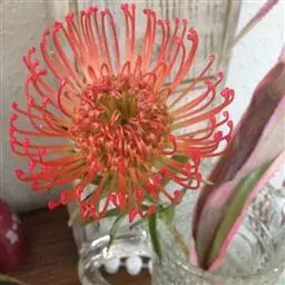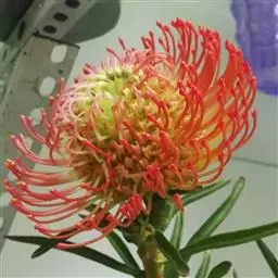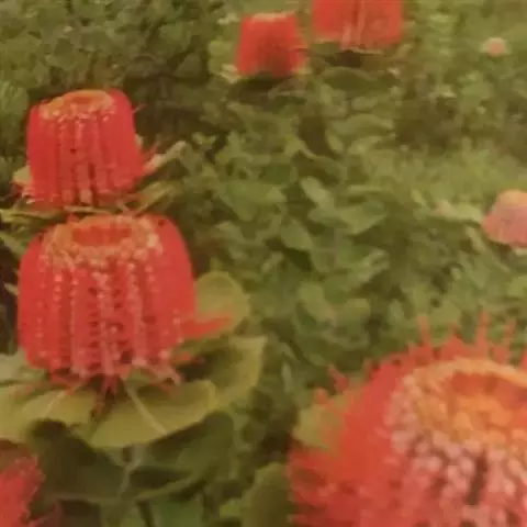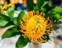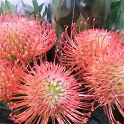 帝王花,山龙眼科帝王花属多年生常绿灌木植;茎干粗壮,叶色翠绿光亮;花朵呈圆球状;其苞片有的完全打开,…