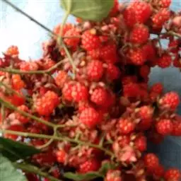 分批采收山莓的果实成熟期不一致,要分批采收,通常第1次以采收后的7~8d浆果大量成熟,以后每隔1~2d采收1次。要在尽可能早晨采收,此时香味最浓,下雨天不要采收,否则易于霉烂。果实集中成熟时,应将采收员分成两组,一组专门采收过熟果、受伤害果,另一组专门采收优质果,以避免交叉污染。