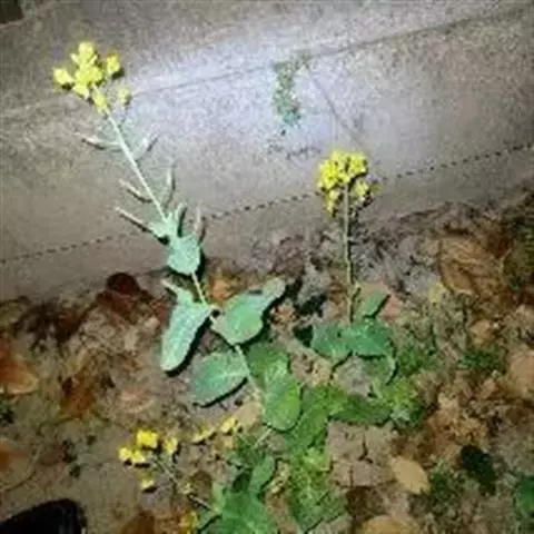 茎直立,有分枝,仅幼叶有少数散生刚毛。下部叶大头羽裂,顶裂片卵形,长7-9厘米,顶端圆形,基部近截平,边缘具钝齿,侧裂片约2对,卵形,长1.5-2.5厘米;叶柄长2.5-6厘米,基部有裂片;中部及上部茎生叶由长圆椭圆形渐变成披针形,基部心形,抱茎。总状花序伞房状;;花梗长6-12毫米;萼片卵形,长5-8毫米;花瓣浅黄色,倒卵形,长10-15毫米,爪长4-6毫米。长角果线形,长40-80毫米,果瓣具1中脉,喙细,长1-2厘米;果梗长约2厘米。种子球形,直径约1.5毫米,黄棕色,近种脐处常带黑色,有网状窠穴。花期3-4月,果期4-5月。