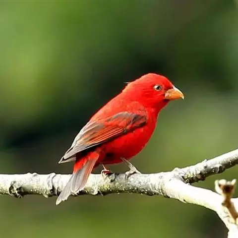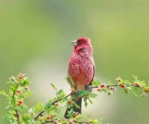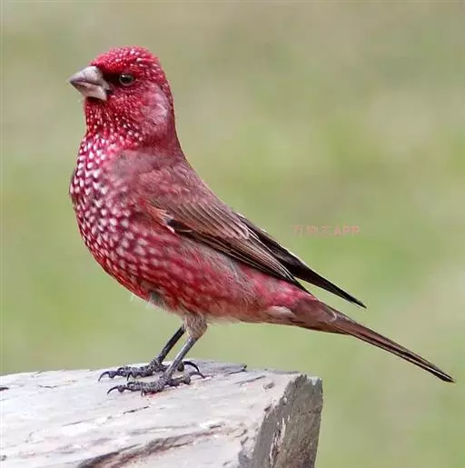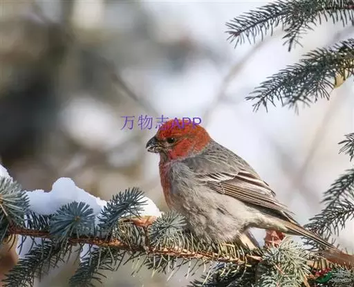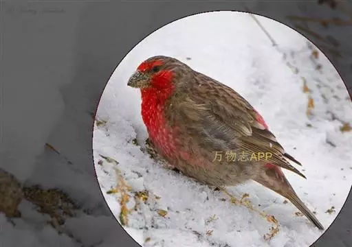 长尾朱雀:体长18厘米,体重16-26克。雄鸟额、颏和眼后为暗红色,…