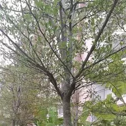 落叶大乔木,落叶前变为黄棕色,高达25米。树皮灰色,块状脱落,光滑,具有板状根。单叶,近对生,叶片矩状椭圆形,长5-14厘米,宽2-45厘米,薄革质,无毛,基部不对称,叶缘具钝锯齿,顶端钝形或钝尖,基部圆形或心形;叶柄长0.5-1.2厘米,常具2腺点。