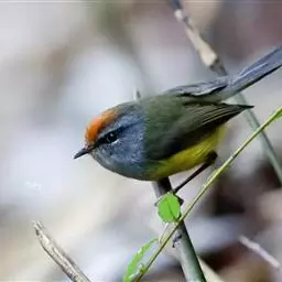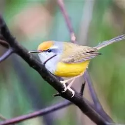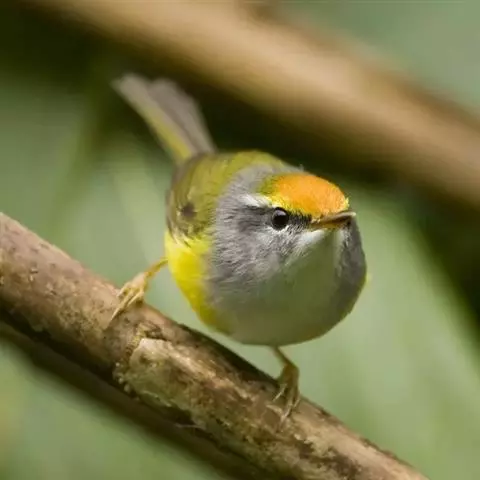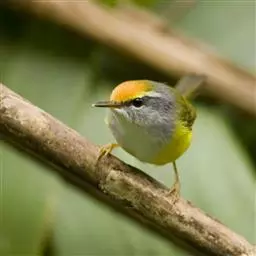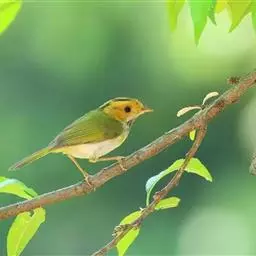金头伪缝叶莺:体长10-12厘米,是一种体型小的棕顶冠、黄色腹森林莺类。头顶亮黄色,具明显的黄色眉…