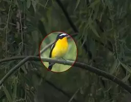 黑脸鹟莺:体长10厘米,是有特色的体小而多彩的莺鸟。粗眉纹,颏、喉及尾下覆羽黄色,脸罩黑,…