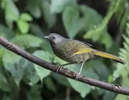 黄腹树莺:小型鸟类,体长10-11厘米。雌雄两性羽色相似。上体概暗橄榄褐色;颏、喉沾棕,…