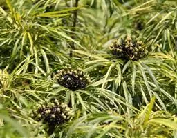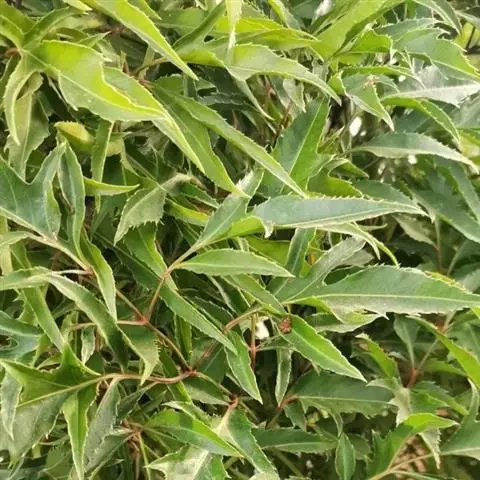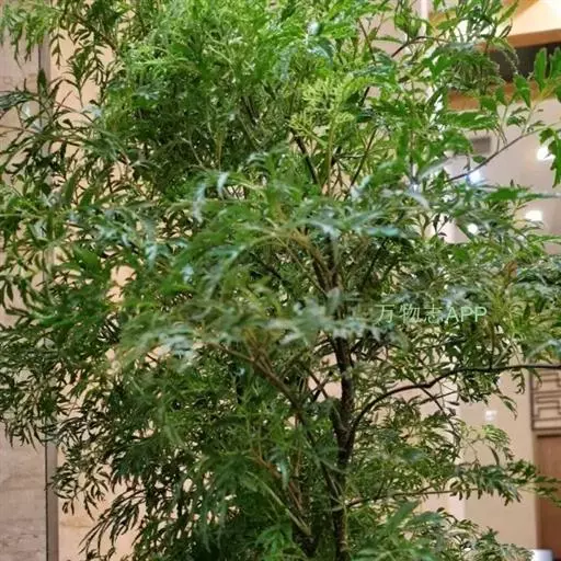 常绿性灌木。株高1-3米,侧枝细长,分枝皮孔显著。叶为不整齐的2-3回羽状复叶,中脉明显,小叶狭长披针形,羽状深裂形,叶缘呈不规则锯齿状,叶面平滑,羽状侧脉,纸质,有叶鞘,侧枝多下垂,树冠呈伞状。