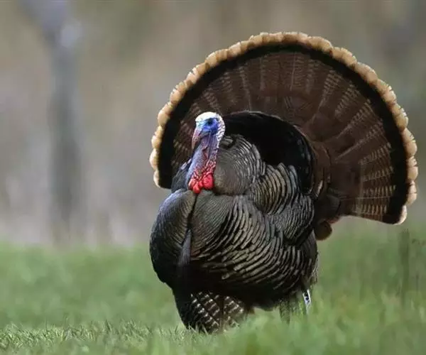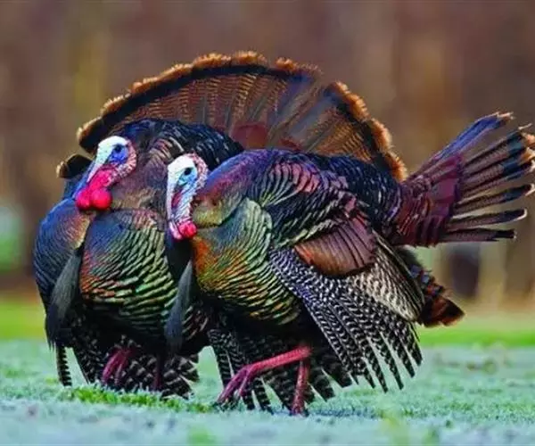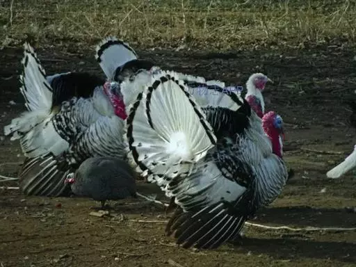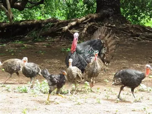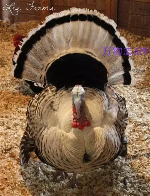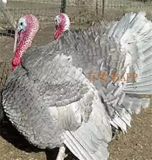 火鸡(学名:Meleagris gallopavo):也叫吐绶鸡。体长110-115厘米。翼展125-144厘米,体重2.5-10.8千克。嘴强大稍曲。头颈几乎裸出,只有稀疏羽毛,并着生红色肉瘤,喉下垂有红色肉瓣。背稍隆起。体羽呈金属褐色或绿色,散布黑色横斑;两翅有白斑;尾羽褐或灰,具斑驳,末端稍圆。脚和趾强大。体羽从乳白色至棕灰色至黑色褐黑色,闪耀多种颜色的金属光泽。头、颈上部裸露,有红珊瑚状皮瘤,喉下有肉垂,颜色由红到紫,可以变化。雄火鸡尾羽可展开呈扇形,胸前一束毛球。