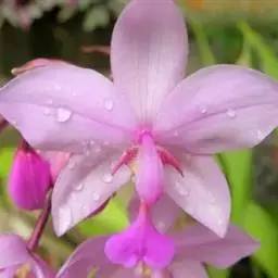 紫花苞舌兰:植株高达1米。假鳞茎卵状圆锥形,具3-5枚叶。叶质地薄,淡绿色,狭长,具折扇状的脉。…