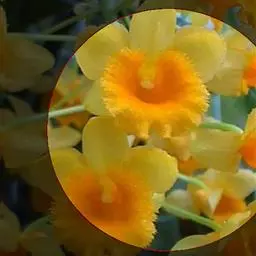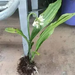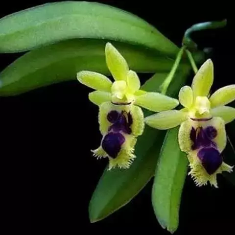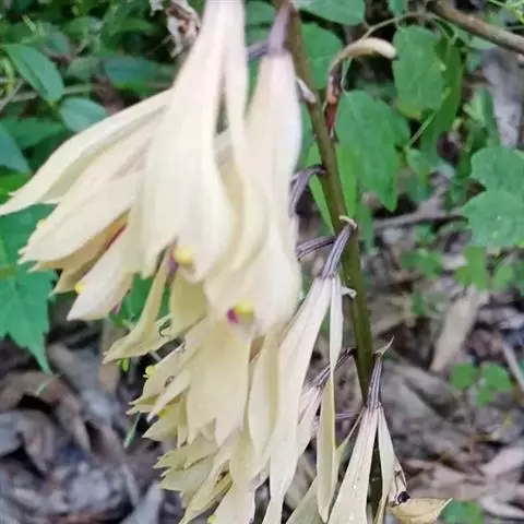 坛花兰(学名:Acanthephippium sylhetense Lindl.):假鳞茎卵状圆柱形,长达15厘米,基部粗1.5-4厘米,具2-4个节,被数枚大型鳞片状鞘;鞘膜质,彼此套叠。叶2-4枚,互生于假鳞茎上端,厚纸质,长椭圆形,通常具5条主脉。花葶肉质而肥厚,基部具数枚宽卵状披针形的鳞片状鞘;总状花序具3-4朵花;花白色或稻草黄色,内面在中部以上具紫褐色斑点;花瓣藏于萼筒内,近卵状椭圆形,长2-2.5厘米,宽1.1厘米,先端钝,基部收狭为爪,具7条脉;唇瓣3裂。花期4-7月。