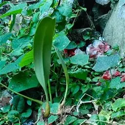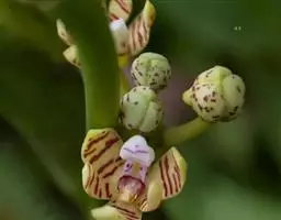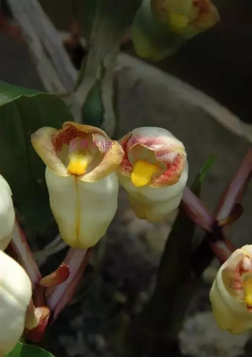 喉红石斛:附生。茎丛生,直立,粗短,近棒状纺锤体。叶2-4枚,生于茎顶。总状花序顶生,花序轴长5-…