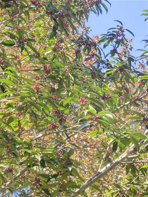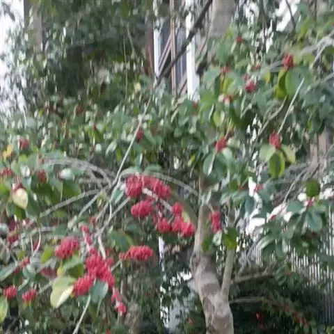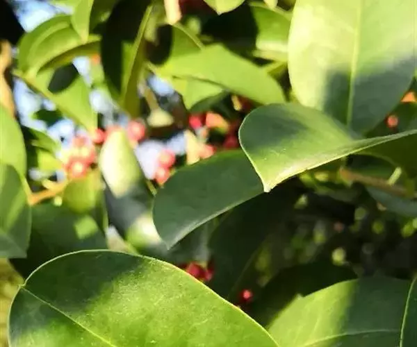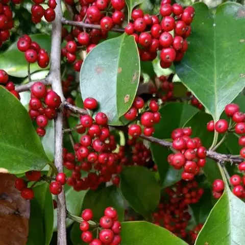 铁冬青花后果由黄转红。铁冬青树叶厚而密,湖边或开阔地种植此树,能形成阴蔽的环境,又能产生多层次丰富景色的效果,是理想的园林观赏树种。