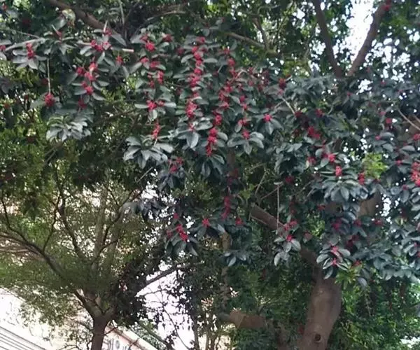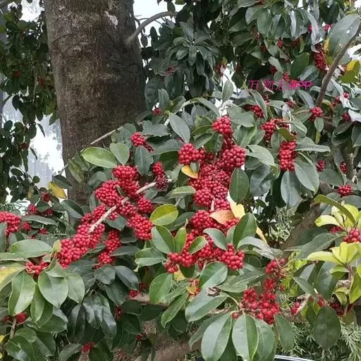 园林应用习惯称为万子千红树(意即多子多孙,兴旺发达之意,是旺家旺业的好意头树木品种),花黄白色,芳香。浆果状核果椭圆形,有光亮,深红色。花期3~4月,果成熟期11月。花后果由黄转红,秋后红果累累,十分可爱。铁冬青树叶厚而密,树木粗壮健康,树形古朴美观,是理想的园林观赏树种。