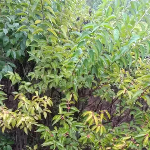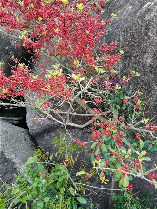 果近球形或稀椭圆形,直径4-6毫米,成熟时红色,宿存花萼平展,直径约3毫米,浅裂片三角形,无缘毛,宿存柱头厚盘状,凸起,5-6浅裂;分核5-7,椭圆形,长约5毫米,背部宽约2.5毫米,背面具3纵棱及2沟,稀2棱单沟,两侧面平滑,内果皮近木质。花期4月,果期8-12月。