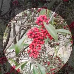 铁冬青(Ilex rotunda Thunb.),别名救必应、熊胆木、白银香、白银木、过山风、红熊胆、羊不食、七星香、万紫千红等,为冬青科亚热带常绿灌木或乔木,高可达20米,胸径达1米;树皮灰色至灰黑色;叶薄革质,椭圆形、全缘,叶面有光泽;花小,黄白色,芳香;雌雄异株,通常4-7朵排成聚伞花序,腋生或生于当年小枝上,果球形,6-8mm大小,熟时红色;花期3一4月,果熟期10-12月。 生于海拔400~1100米的山坡常绿阔叶林中和林缘,野外一般多生于湿润肥沃的山间林缘和向阳山坡或溪谷两旁。喜温暖湿润的气候。铁冬青分布于长江流域以南、台湾,朝鲜、日本等地也有。