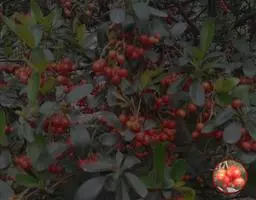 铁冬青 铁冬青为常绿灌木或乔木,枝繁叶茂,四季常青,果熟时红若丹珠,赏心悦目。铁冬青树叶厚而密,湖边或开阔地种植此树,能形成阴蔽的环境,又能产生多层次丰富景色的效果,是理想的园林观赏树种。 有火烧叶子,不燃烧会形成黑色圆圈,故可做防火树种。