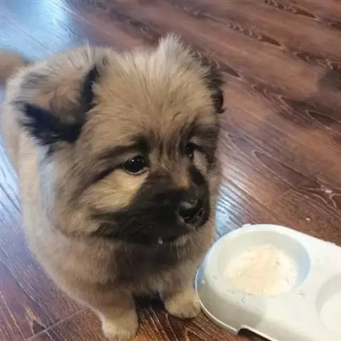 荷兰毛狮犬耳朵小,呈三角形,在头部较高的位置,且竖立;口吻中等长度,既不粗糙也不尖细,…