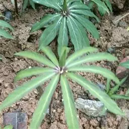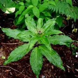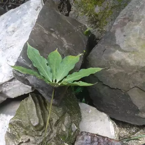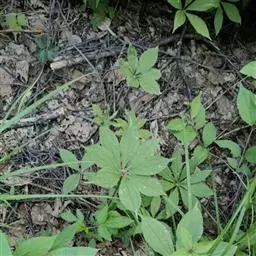 2.《本草衍义》:蚤休,无旁枝,止一茎挺生,高尺余。颠有四、五叶,叶有歧,似虎杖。中心又起茎,亦如是生叶。惟根入药用。