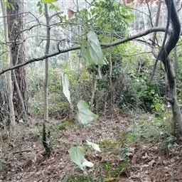 稍木质的藤本;茎枝纤细,有直线纹,嫩部被微柔毛。叶纸质,近戟形或箭形,长6-12.5厘米,宽5-7厘米,顶端短尖,后裂片有角或粗齿,边缘有波状粗齿,上面无毛,下面被柔毛或粗糙硬毛,脉上很密;基出脉5-7条,中脉有3-5对侧脉,网脉上面明显;叶柄长4-5厘米,被微柔毛。雄花序腋生或生老枝上,圆锥花序状,单生或2-3个簇生,约5-17厘米长,疏散;花梗长5-10毫米;萼片倒披针形,长6-7毫米;花瓣6,肉质,楔形,长1.5-2.5毫米;雄蕊6,长4-5毫米。雌花和果实未见。花期3月。